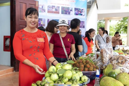 Các sản phẩm nông nghiệp tiêu biểu, đặc trưng của HVND xã Bờ Y được trưng bày, giới thiệu tại đại hội