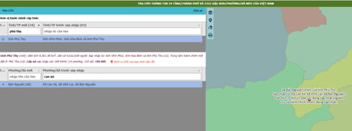 Bước 2: Tra cứu thông tin "Phường/xã trước sáp nhập" và "Phường/xã mới".