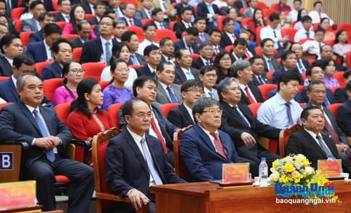 Tại buổi lễ, Ủy viên Bộ Chính trị, Giám đốc Học viện Chính trị Quốc gia Hồ Chí Minh, Chủ tịch Hội đồng Lý luận Trung ương Nguyễn Xuân Thắng đã trao Quyết định của Bộ Chính trị về việc thành lập Đảng bộ tỉnh Quảng Ngãi cho Ban Thường vụ Tỉnh ủy Quảng Ngãi.