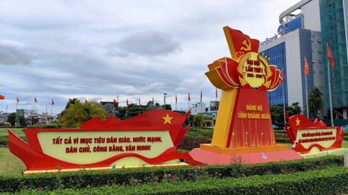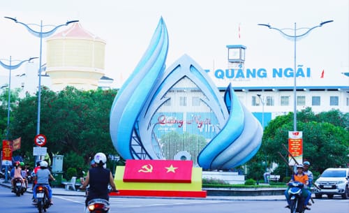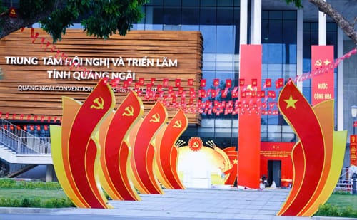 Trên các đường phố ở trung tâm tỉnh Quảng Ngãi rợp cờ hoa chào mừng Đại hội - một sự kiện chính trị trọng đại trong năm 2025 này
