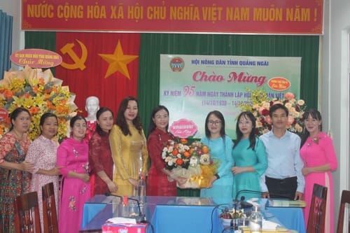 Dịp này, nhiều cơ quan, đơn vị đã đến thăm, tặng hoa và chúc mừng Hội nông dân tỉnh, CBCC, VC Ban Công tác Nông dân. Ban Thường vụ Hội Nông dân tỉnh xin chân thành cảm ơn và trân quý tình cảm của các đồng chí lãnh đạo: Thường trực Tỉnh ủy, HĐND, UBND, UBMTTQVN tỉnh, Ban Dân vận Tỉnh ủy, Liên đoàn Lao động tỉnh, Hội Liên hiệp Phụ nữ tỉnh, Đoàn Thanh niên Cộng sản HCM, Bộ Chỉ huy Quân sự tỉnh; Chi nhánh Ngân hàng CSXH tỉnh; Ngân hàng NN&PTNT; Ban Giám đốc Công ty phân bón Sao Việt; Đảng ủy, UBND, UBMTTQ xã Sơn Tây Thượng; Hội Nông dân xã Tư Nghĩa…