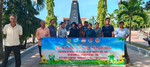 Cán bộ và HVND xã mỏ Cày ra quân dọn vệ sinh