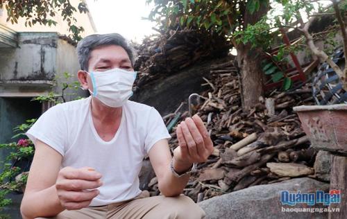 Ngư dân Phan Muôn giới thiệu về chiếc lưỡi câu để câu những loại cá to. Ảnh: B.Hòa